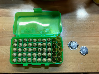 The twist over the ball gives me a handle to pull them out. Unfortunately, I ran out of balls. I put 60 rounds through through the Euroarms yesterday, 36 paper cartridges plus 24 rounds of loose powder and ball, so I only had 40 balls left. Somewhere in my midden is a bag of 100 .454 balls but heck if I can find it.